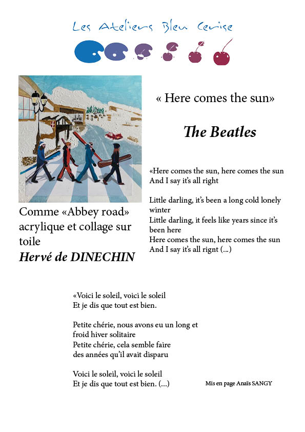 A la fois plaisanterie et travail méticuleux et original de notre artiste de la semaine pour présenter un effet “Beatles”. Le soleil est en effet revenu et nos 4 personnages en profitent pour une balade sur les pistes, ce que n’appréciaient pas du tout nos chanteurs anglais, même si un de leur clip se passe sur les pistes de ski !
